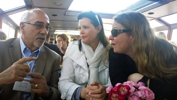 James Groccia (Auburn University), Virve Pekkarinen (Aalto-yliopisto) ja Laura Hirsto (HY) vaihtoivat kuulumisia risteilyllä.