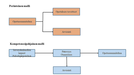 Taulukko 1. Työelämä- ja kompetenssipohjaisen curriculumin suunnittelu verrattuna perinteiseen malliin (mukailtu Frenk & Chen, 2010)
