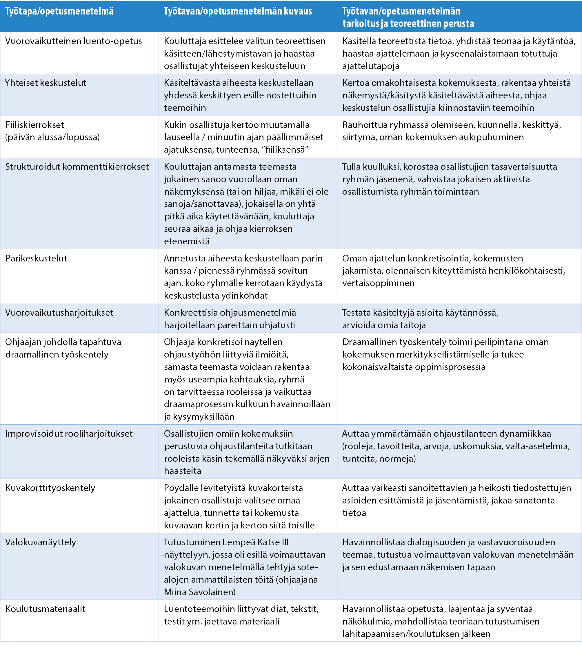 Taulukko 1. Koulutusohjelmassa käytetyt opetusmenetelmät