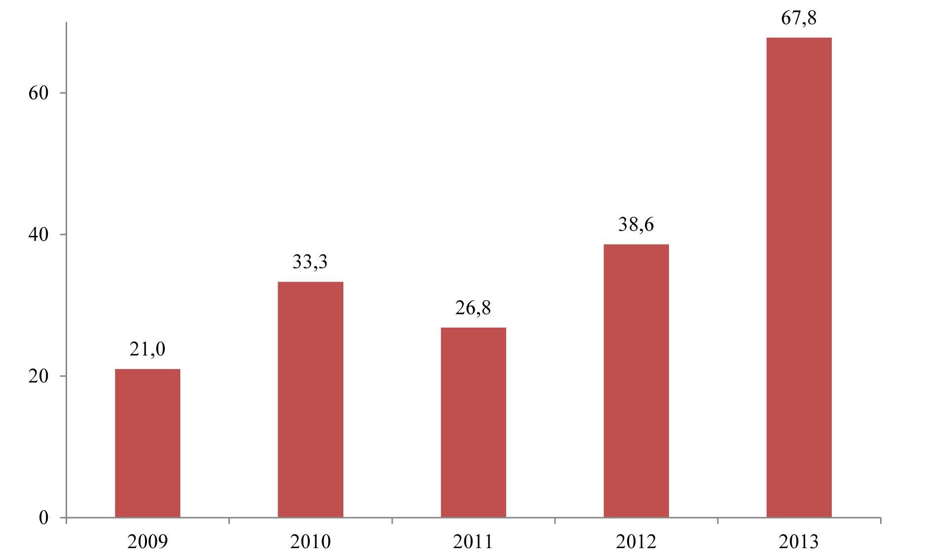 Hops-työskentelyn vaikutusta opintojen jatkuvuuteen kemian laitoksella on tutkittu opiskelijatilastoista vuodesta 2009 lähtien, jotta vertailua voitaisiin tehdä tehostetun hops-työskentelymallin toimivuudesta käytännössä. Jo muutaman vuoden perusteella voidaan sanoa, että opintojaan toiselle opintovuodelle jatkaneiden opiskelijoiden suhteellinen osuus aloittaneiden opiskelijoiden lukumäärästä on suurempi kuin aiempina vuosina (kuvio 3). Vuosien 2010 ja 2013 välillä aloittaneista opiskelijoista opintojaan jatkaneiden lukumäärä on välillä 67–72 %, kun taas vuonna 2009 aloittaneista opiskelijoista vain noin 49 % jatkoi opintojaan toiselle opintovuodelle. Tämän perusteella voidaan sanoa, että opiskelijoiden opintojen jatkumista tukee selkeästi myös laitokselta eri muodoissaan saatava ohjauksen tuki.