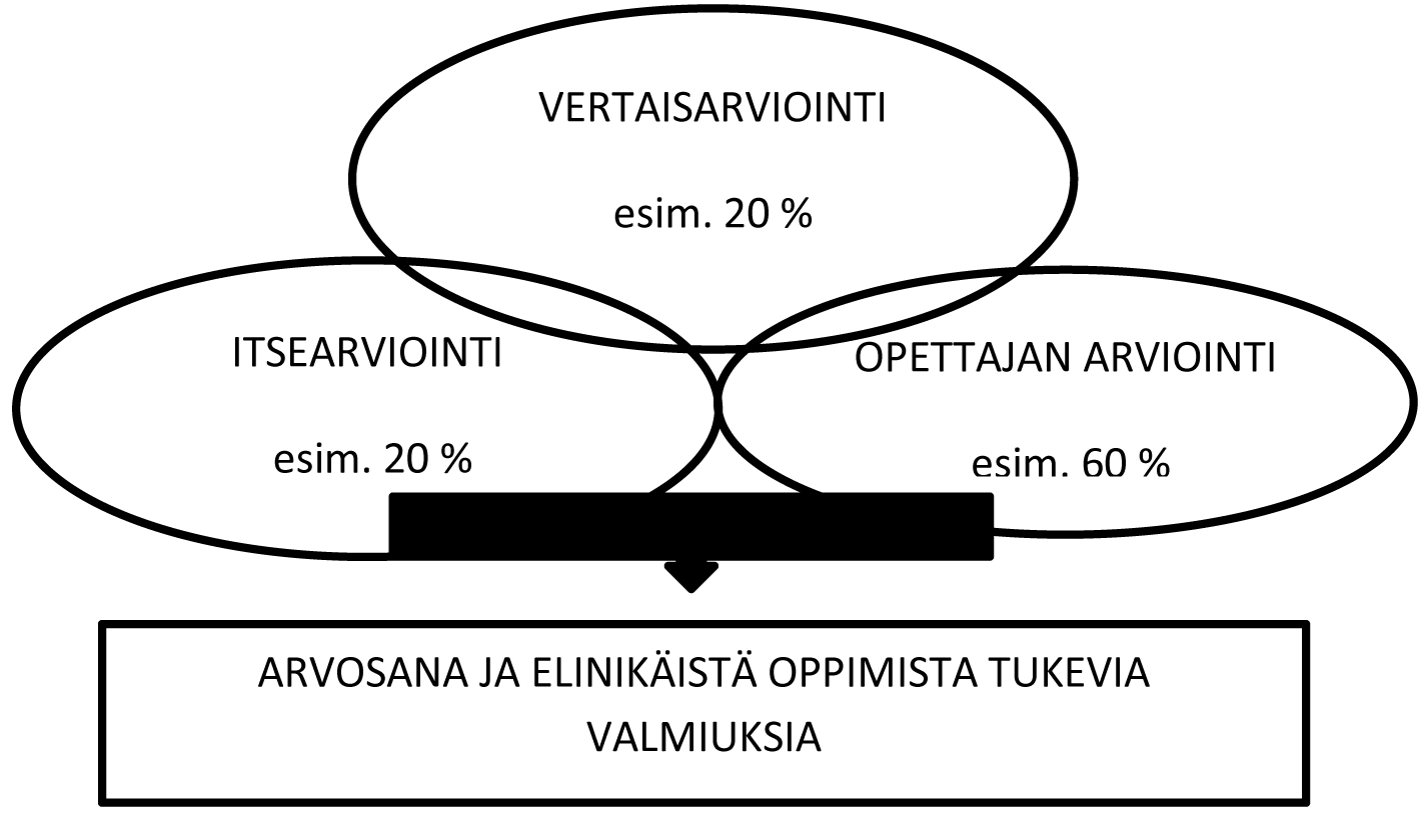 Itse- ja vertaisarviointi on arviointikirjallisuudessa nostettu esiin menetelminä, joilla voidaan sekä edistää opiskelijan oppimista että tukea elinikäisen oppimisen taitojen kehittymistä (Boud, 2000; Kearney, 2013). Taustalla on konstruktivistinen oppimiskäsitys, jossa opiskelijan osallistaminen ja aktivointi nähdään olennaisena oppimiseen vaikuttavana tekijänä. Itse- ja vertaisarvioinnissa opiskelija ei ole pelkästään arvioinnin kohteena, vaan hän osallistuu arvioinnin koko prosessiin ja samalla harjaantuu kehittämään työelämässä tarvittavaa oman osaamisensa arviointia (Boud & Falchikov, 2006; Kearney, 2013; Sadler & Good, 2006). Boud ja Molloy (2013) korostavat, että palautekäytännöt ovat osa arvioinnin prosessia, ja myös niiden tulisi tukea elinikäisen oppimisen taitoja. Opiskelijan tulisi olla palautekäytännöissäkin aktiivinen osallinen eikä pelkästään palautteen vastaanottaja. Australian yliopistokoulutuksen kehittämisprosessissa itse- ja vertaisarviointi on otettu elinikäistä oppimista tukevan arvioinnin osiksi opettajan tekemän arvioinnin rinnalla (Kearney, 2013; kuvio 2). Esitetyssä mallissa arviointi palvelee sekä summatiivista tarkoitusta että elinikäisen oppimisen tarpeita: opettajaopiskelijat pääsevät harjoittelemaan taitoja, joita he myöhemmin tarvitsevat toimiessaan opettajina. Kearney (2013, 281) kutsuu tätä mallia autenttiseksi, oppimista edistäväksi itse- ja vertaisarvioinniksi.