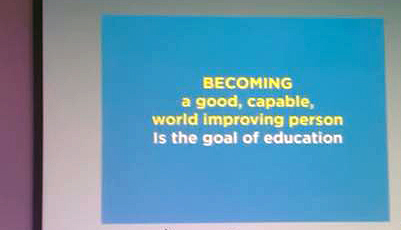 Kuva 2. Prenskyn (2015) esityksen dia kasvatuksen tavoitteesta. Kuva: Minna Willman