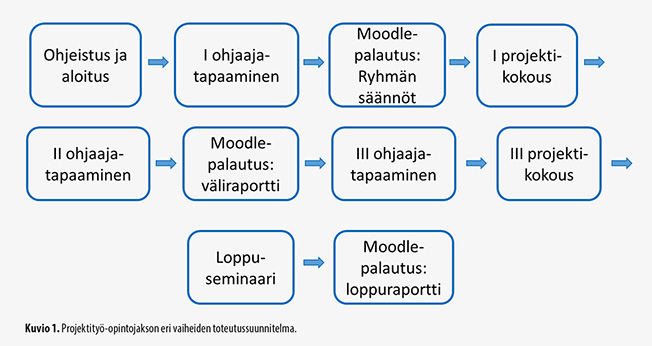 Kuvio 1. Projektityö-opintojakson eri vaiheiden toteutussuunnitelma.