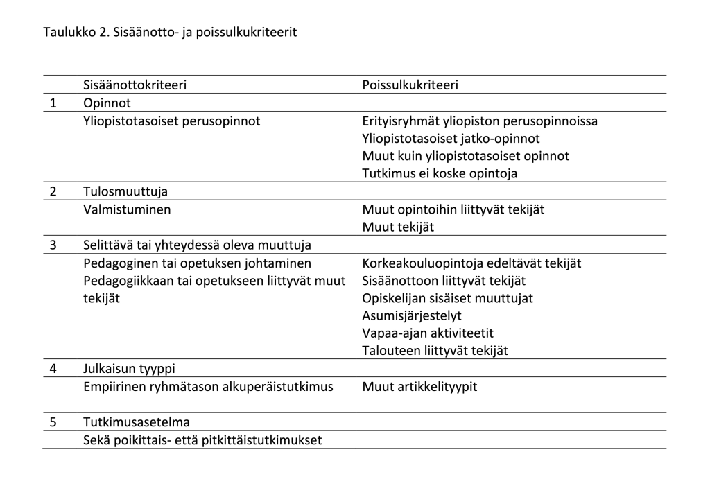 Pedagogiset käytännöt ja perusopiskelijoiden valmistuminen – systemaattinen kirjallisuuskatsaus
